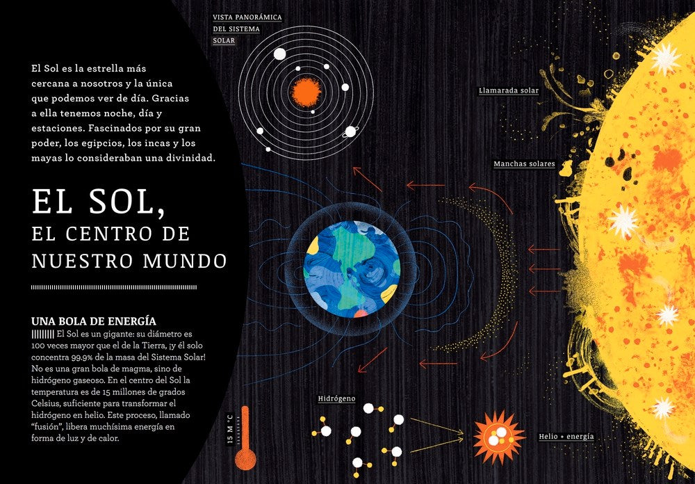 Si alguna vez te has preguntado cuál es el planeta más grande o cuál está más lejano del Sol o por qué Marte es rojo, éste es el libro que necesitas leer. Con ilustraciones del sistema solar, estas páginas revelarán todos los secretos que se esconden en el corazón de nuestra casa estelar. Descubre el origen de los anillos de Saturno, conoce cuál es la temperatura ardiente de Venus y lee la explicación del cinturón de asteroides. /